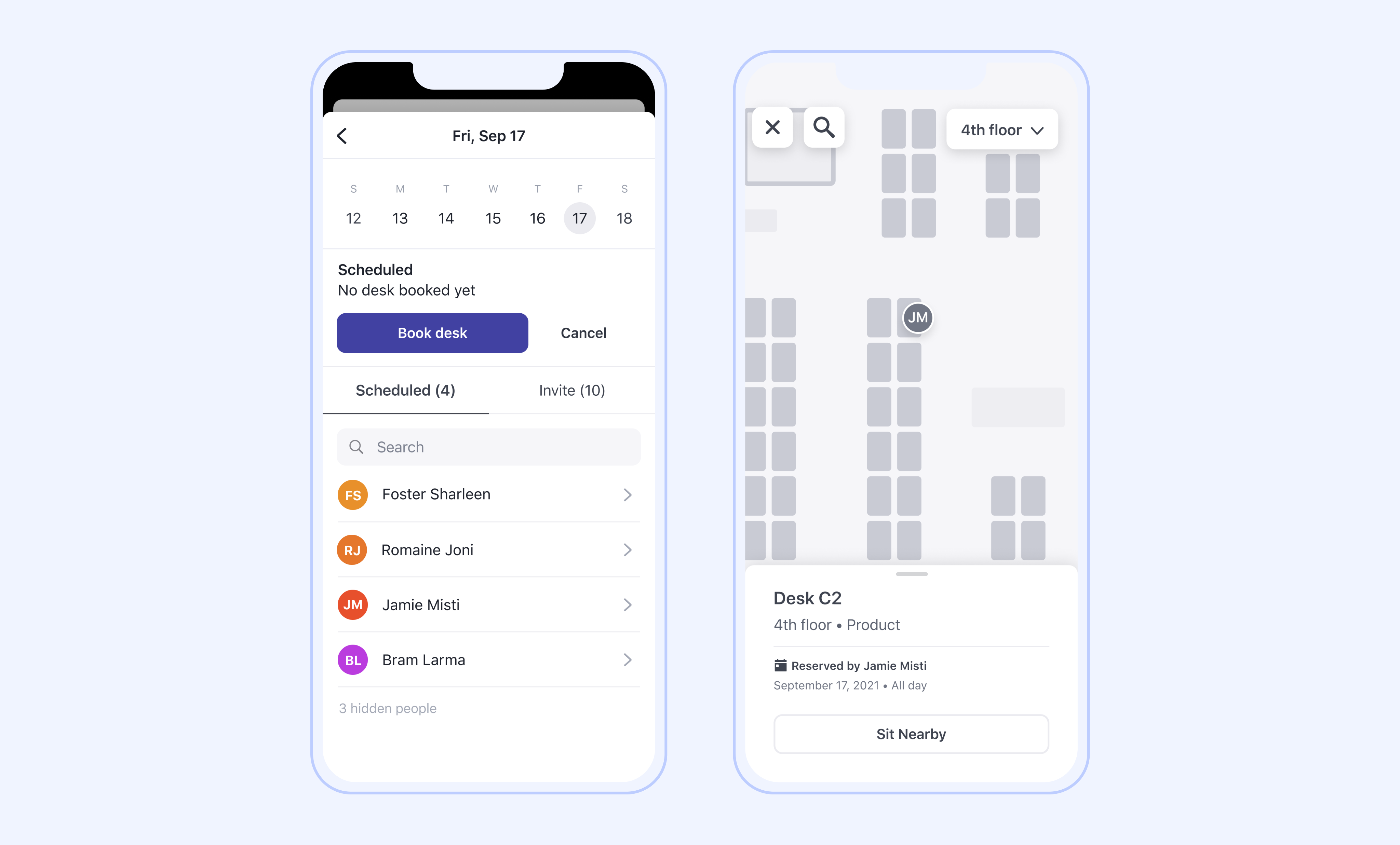 Another big challenge that has come with hybrid work, is feeling like you need to be available at all times. If youâre remote, you probably have your work email and messaging app on your phone, answering pings at all hours of the day. If youâre working from the office, then anyone can just walk up to your desk to ask you a question.While the extroverts of the world are rejoicing that they can now find their coworkers in a breeze, not everyone wants to be so available. We got you covered. Employees can opt to disable sharing their schedule and desk location to maintain their privacy.
