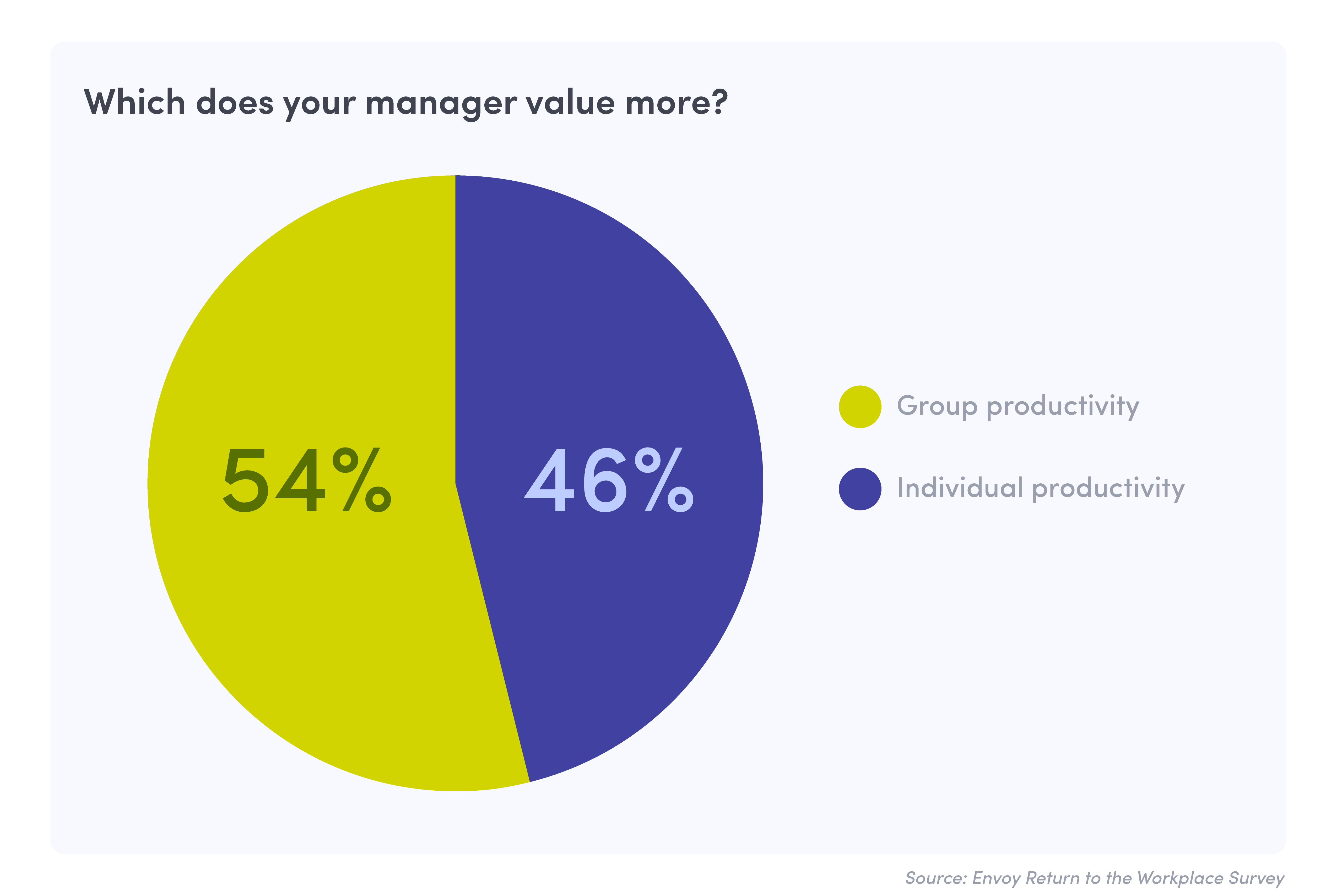 More than half of office workers (54%) say their managers value group productivity over individual performance. How well people collaborate with others and how much work they’re able to accomplish as a team is more important than individual performance.