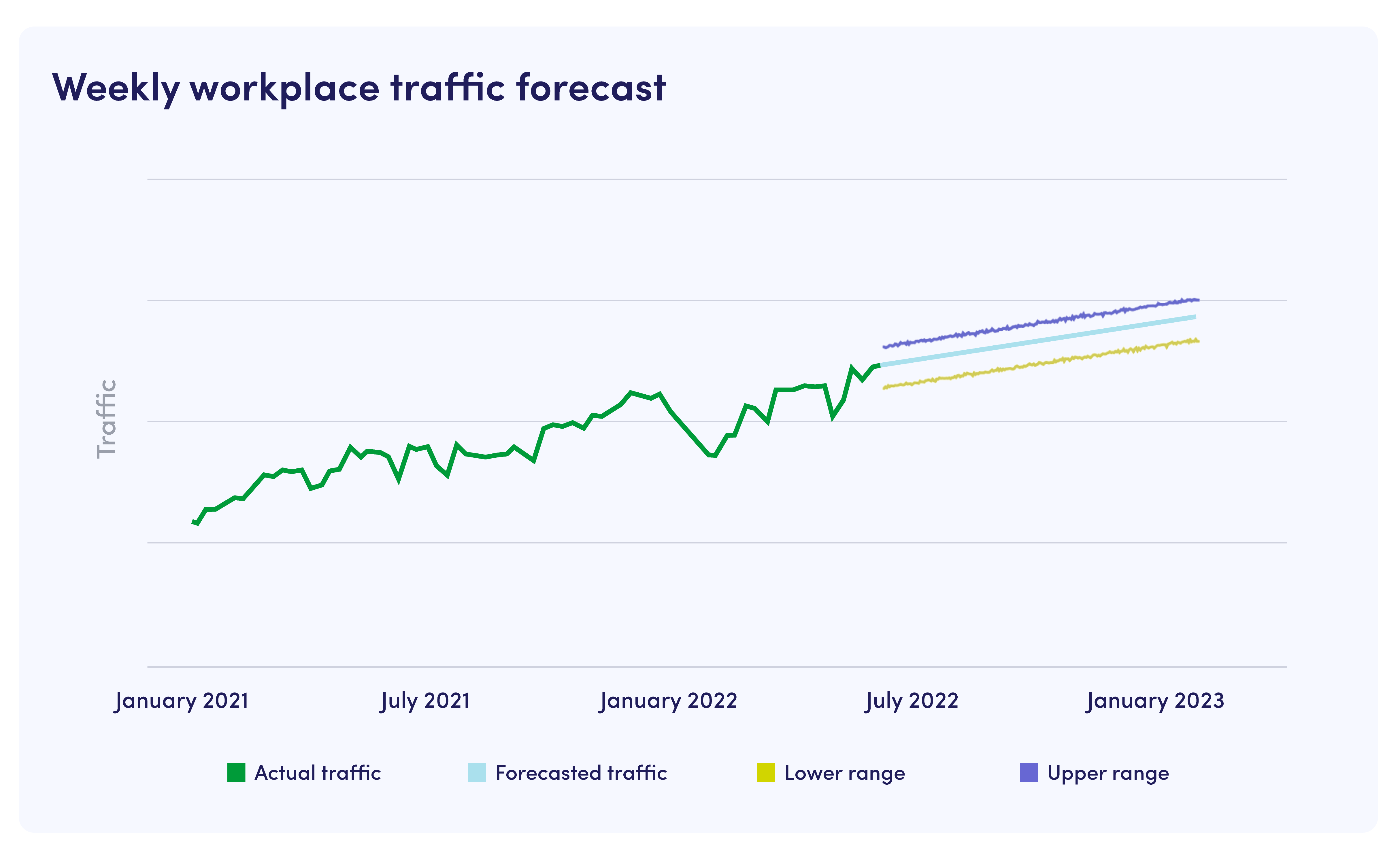 Since the beginning of the pandemic, workplace traffic has seen its ups and downs. These waves have come from new variants of the virus, summer lulls, and holiday breaks. So far, 2022 has been no different.But now, after two plus years, weâre able to notice patterns and trends in workplace data. So much so, that we can even begin to make predictions about what workplace foot traffic will look like in the back half of the year. To understand trends in workplace traffic since the start of the pandemic, our data analytics team analyzed millions of employee and visitor sign-ins from over 14,000 locations across the globe. Then, we took what weâve learned so far and forecasted what to expect over the next six months. Letâs dive into the patterns and predictions.
