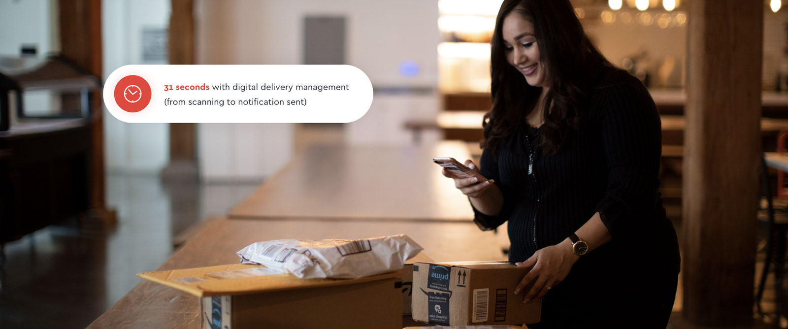 Compare this to digital delivery management. If you’re using delivery management software, the median time it takes from the moment a package is scanned to when a notification is issued to the recipient is just 31 seconds—a mere fraction of the time it takes to manually manage deliveries. This saves valuable labor not to mention the time it typically takes to physically locate someone.