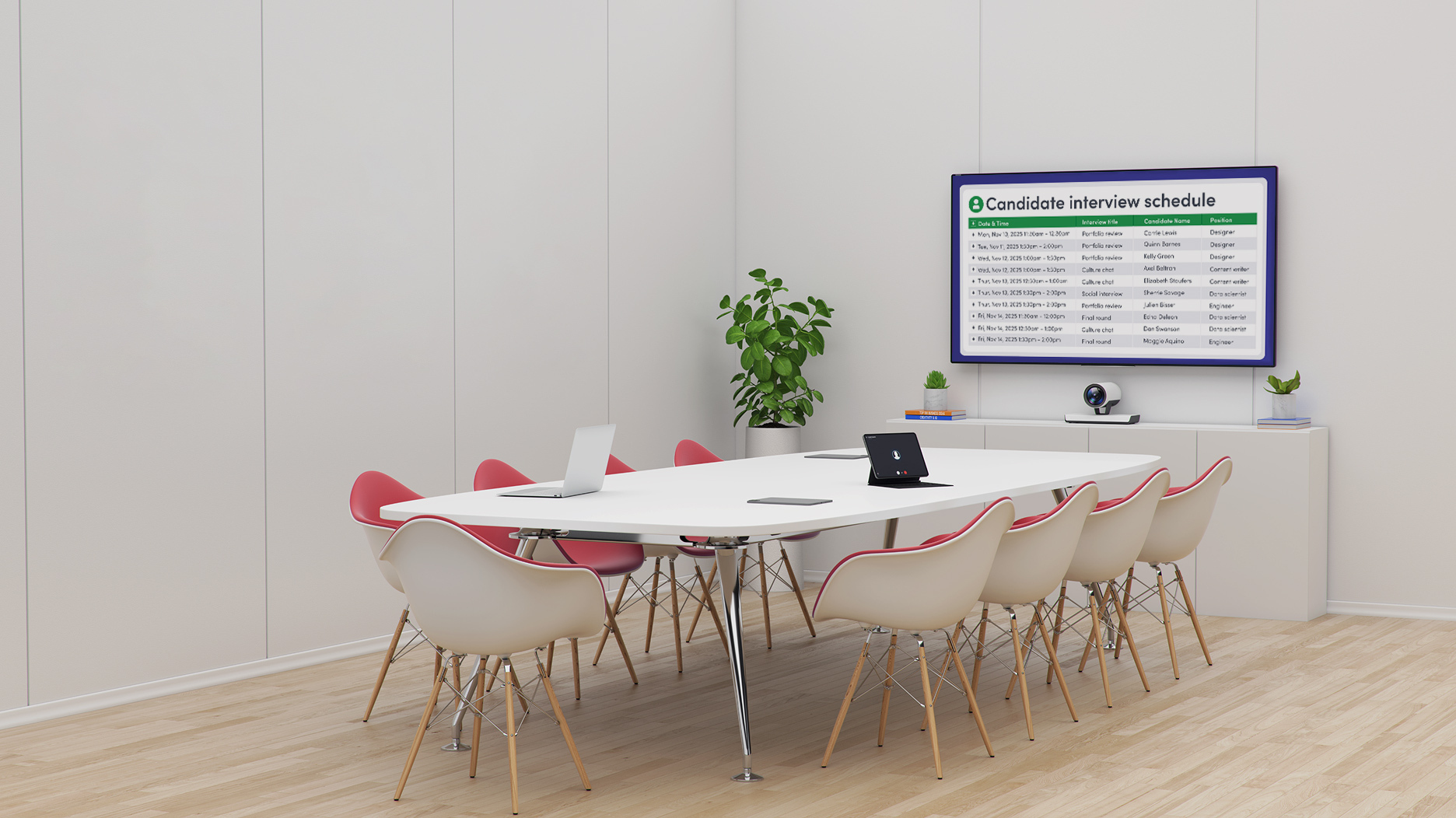Repurpose meeting room displays and devices during downtime to deliver valuable announcements, key updates, or essential reminders.