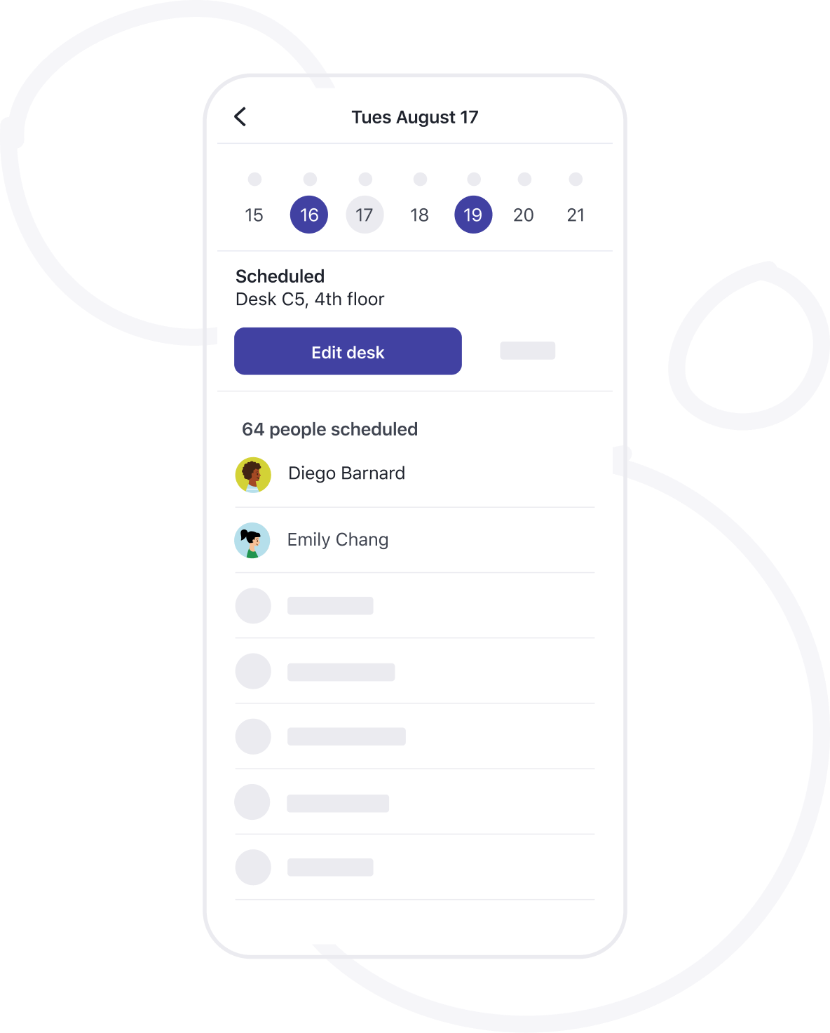 They arrive at the workplace and automatically unlock doors with access control on their phone then easily find the hot desk they reserved the night before.