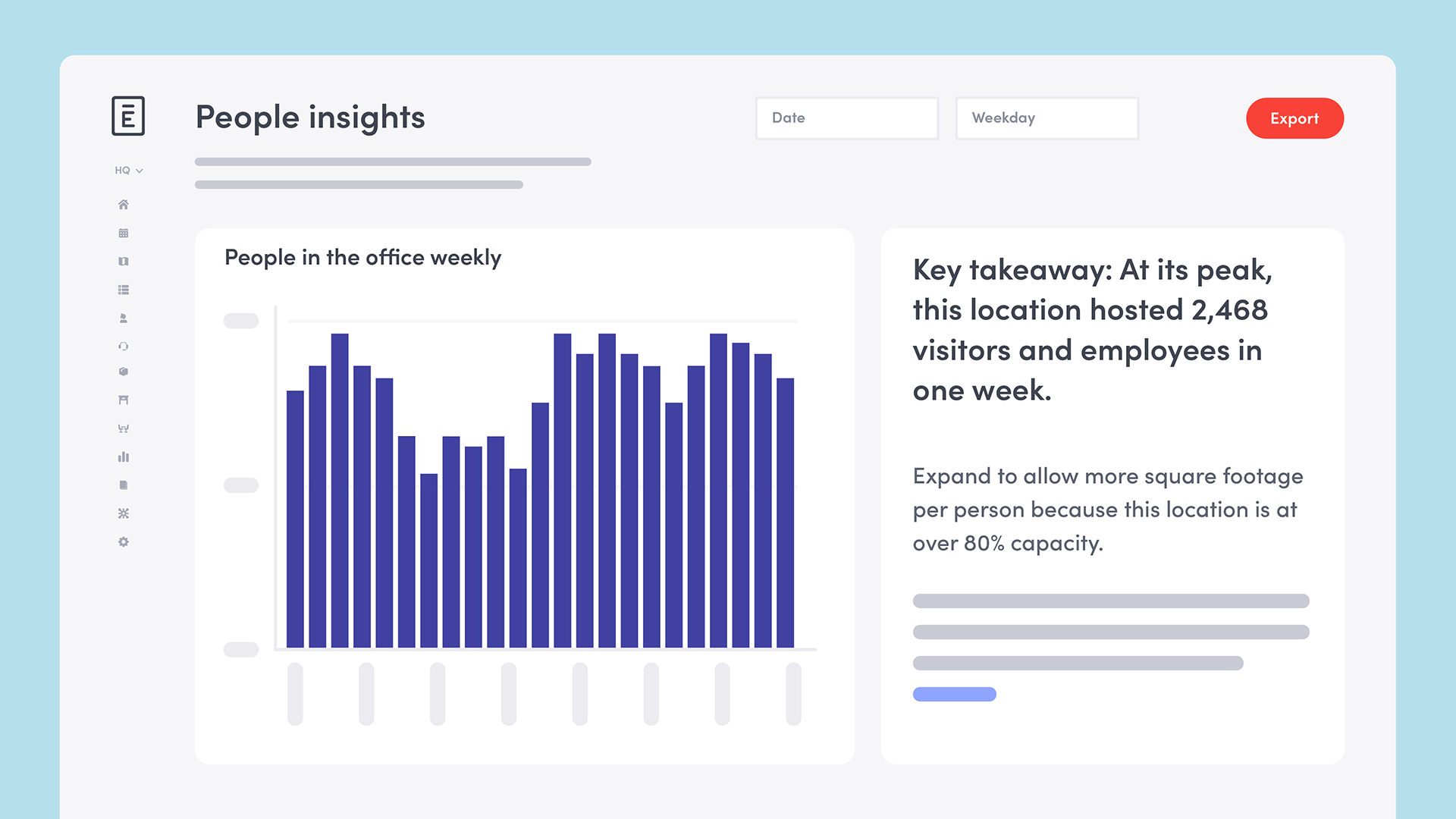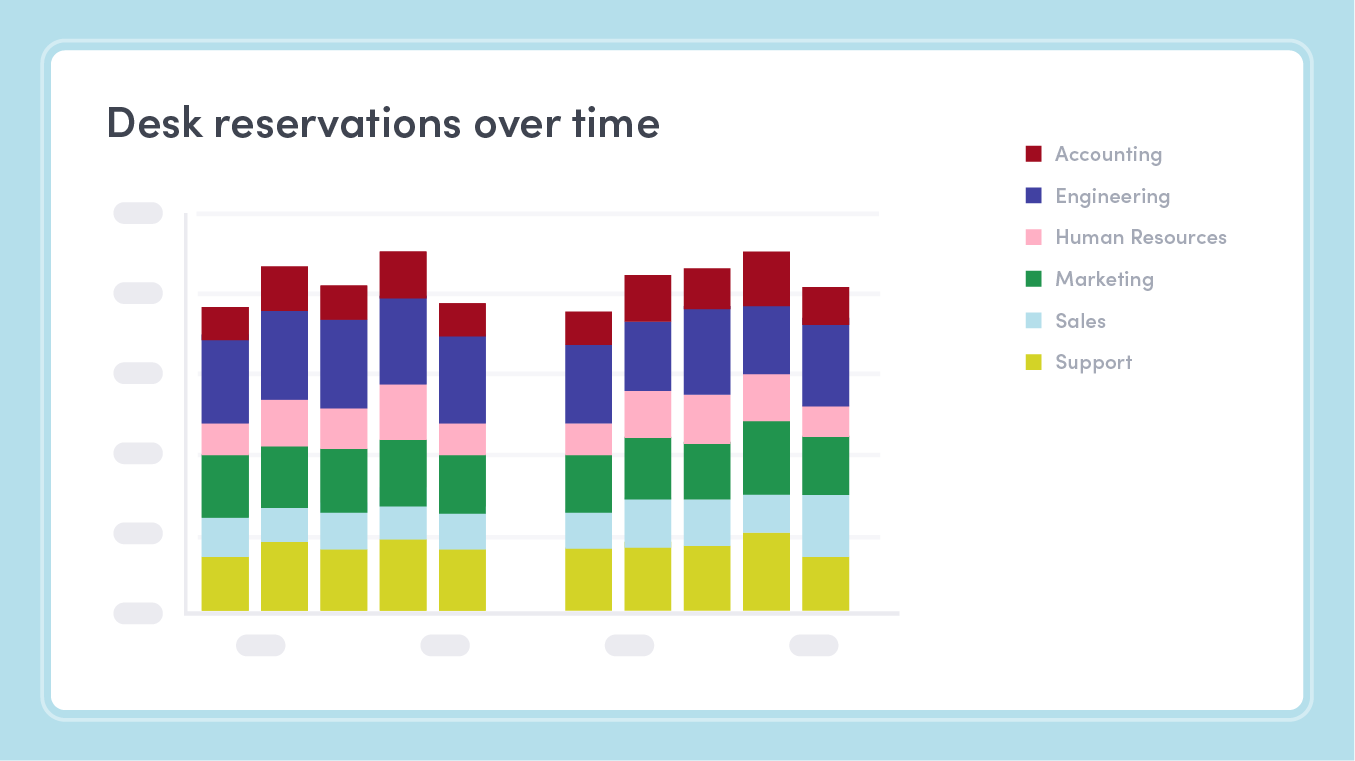 If your organization uses hot desking or bookable desks, this data can give you additional insights into how your space is being used. Are certain neighborhoods consistently booked up? It might be time to add more workstations to accommodate the higher influx of people using that space.