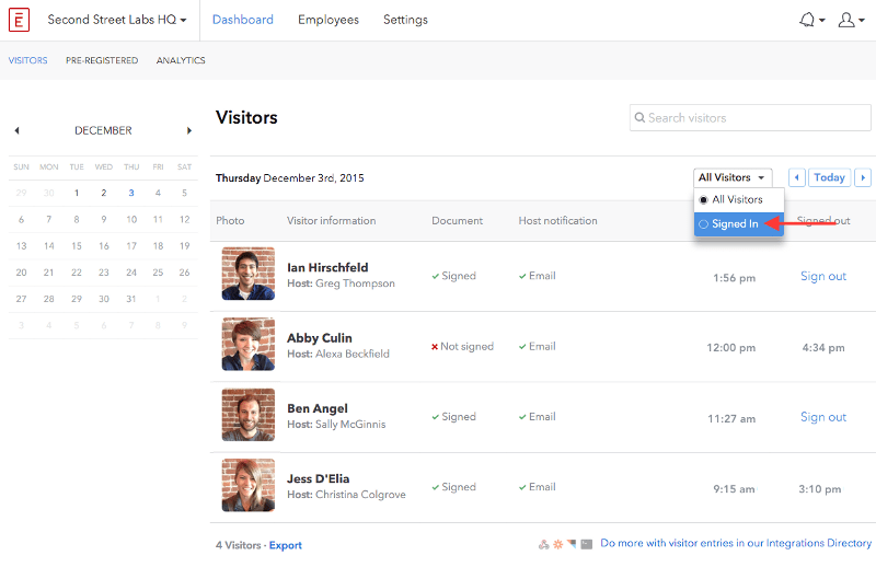 âThis feature allows you to see, at a glance, who is still in your building. In the event of an emergency or evacuation, viewing signed-in visitors on your web dashboard (which works on mobile) would give a concise list of who to account for.