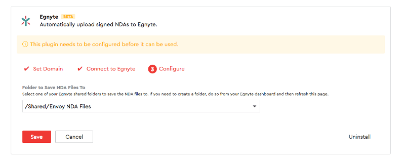 Egnyte joins Box and Dropbox in our integrations directory as the newest option for signed NDA storage and sharing. With the Envoy + Egnyte integration, signed NDAs are automatically uploaded to the designated Egnyte folder of your choice. Learn more about our Egnyte integration.