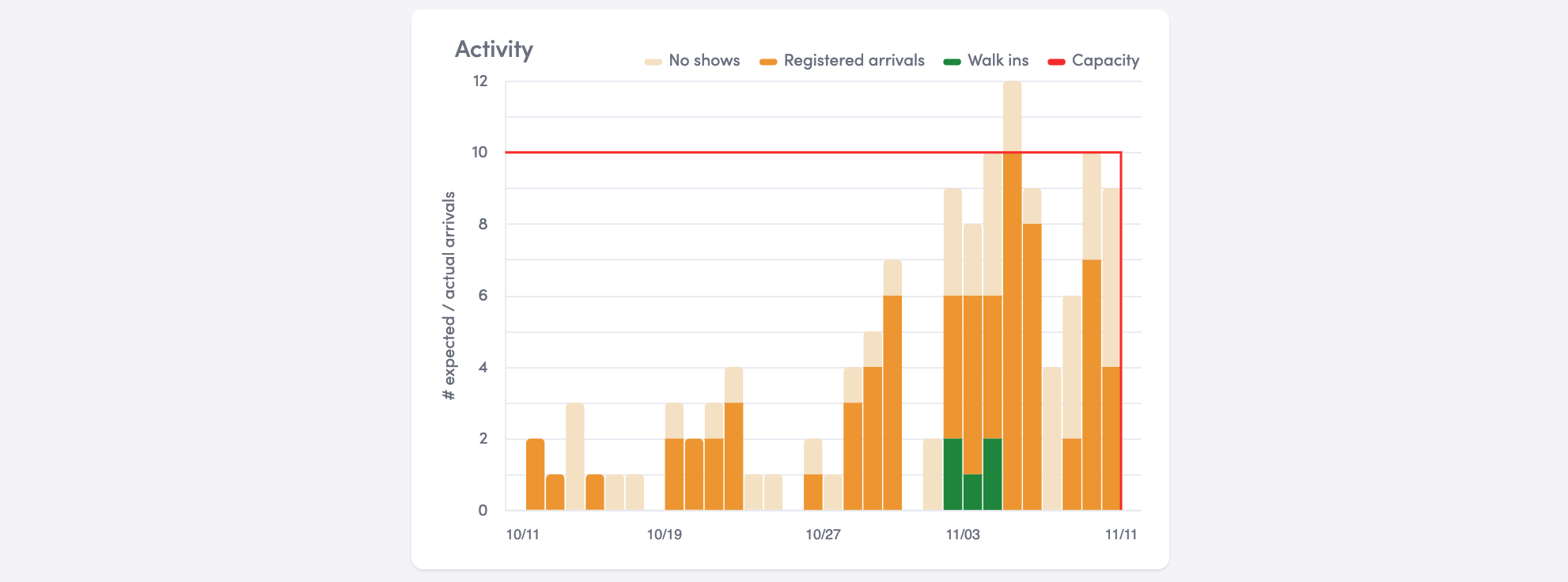 - Capacity: This can show you visually how many visitors you had in comparison to where the capacity was set.