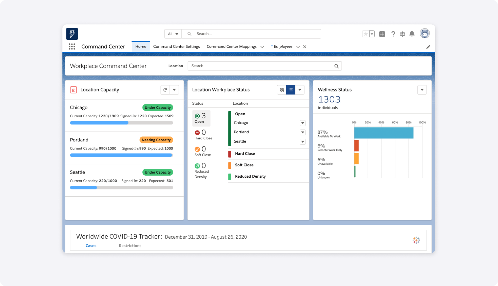 Maybe your doors are already open to all your employees. Or your team is planning to work from home through the rest of the year. Either way, Envoy and Salesforce can help you stay prepared. You can set up Envoy at all your offices in less than 30 minutes without any previous knowledge or technical expertise required. Welcome employees and visitors to the office that day, knowing they’ll be safe. Then sync this data into your Workplace Command Center to manage safety and preparedness from a single hub.