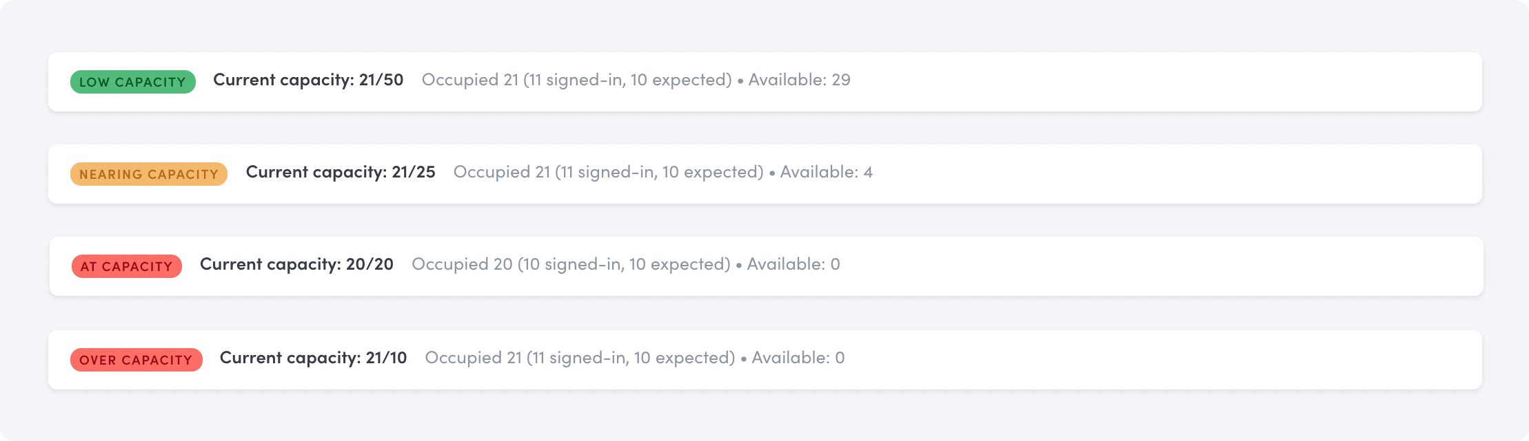 - Get alerted when someone attempts to sign in when your location is already at capacity