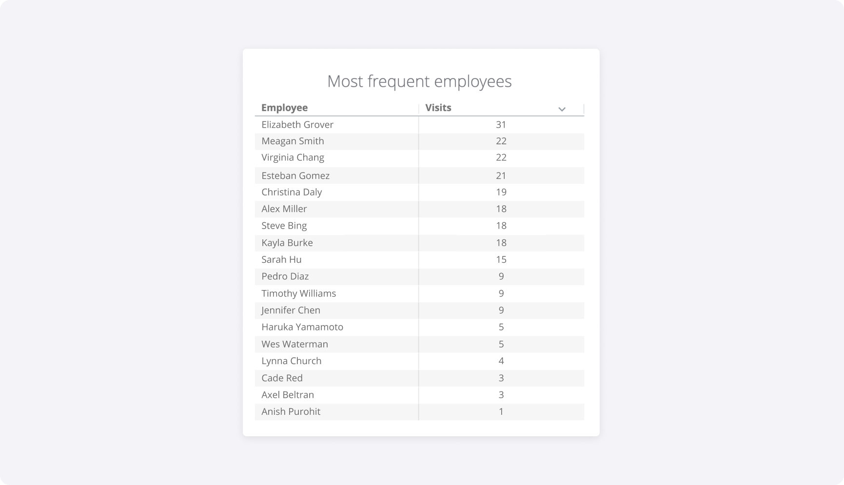 Knowing expected occupancy and understanding trends are important. But at the end of the day, these are people who are coming into the office. Envoy Protectâs analytics allows you to see who exactly is coming into the office and how often. Harris says he uses this to understand and get insights from âpower-users,â to better craft the workplace experience for them. âI love being able to see what teammates are coming into the office during each phase. I can reach out to them to validate that our processes are working. I can see if there are certain teams that are using the office more often. This allows our team to optimize how the office works for that team or even for one individual. For instance, if I notice that Elizabeth is coming in every day I can assign her a designated desk so she feels even more comfortable returning to a space that she knows is clean each day.â