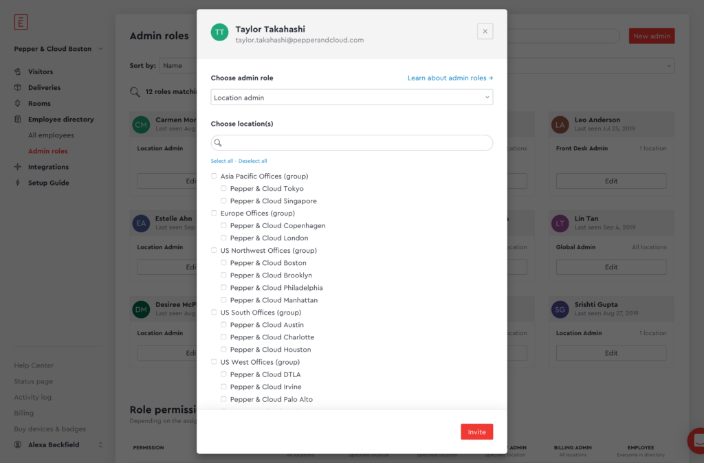 You can also use groups to get new administrators set up faster. Now, when you add a new administrator in Envoy, you can make them an administrator at all of the locations in a group in one click, so you can move on to the next pressing project faster.