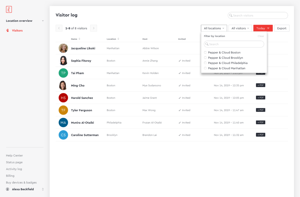 Now your Location Admin can see at a glance whoâs visiting across all the locations they manage, so they can stay informed while keeping their other work moving forward.