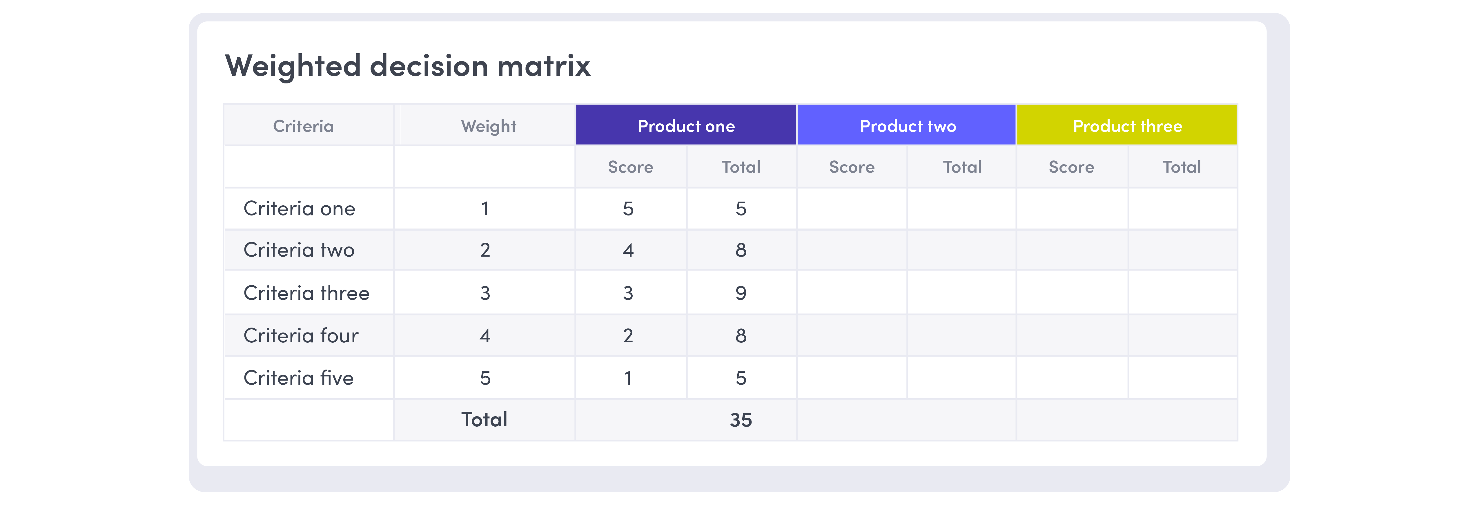 Your company could be in the “early” stage if it has limited processes for regulating its technology. For example, your workplace team uses several tools across locations and doesn’t have a standardized process for using them. They even use a pen and paper sign-in sheet to check in visitors. After evaluating these tools, your team concludes they don’t meet your security needs.In the early phase, your team should define its workplace security requirements. To do this, create a test plan that helps you score different tools that are critical to your business. These requirements will come in handy when you score your company’s current tools against other options in the market. The goal is to find the right technology for your company that meets your security standards. Also, consider what your organization is doing manually, such as pen and paper sign-in. The ideal tool may offer a solution that automates and secures these manual processes.An example decision matrix your team could use to score solutions might look like the chart below. Some criteria to consider include: