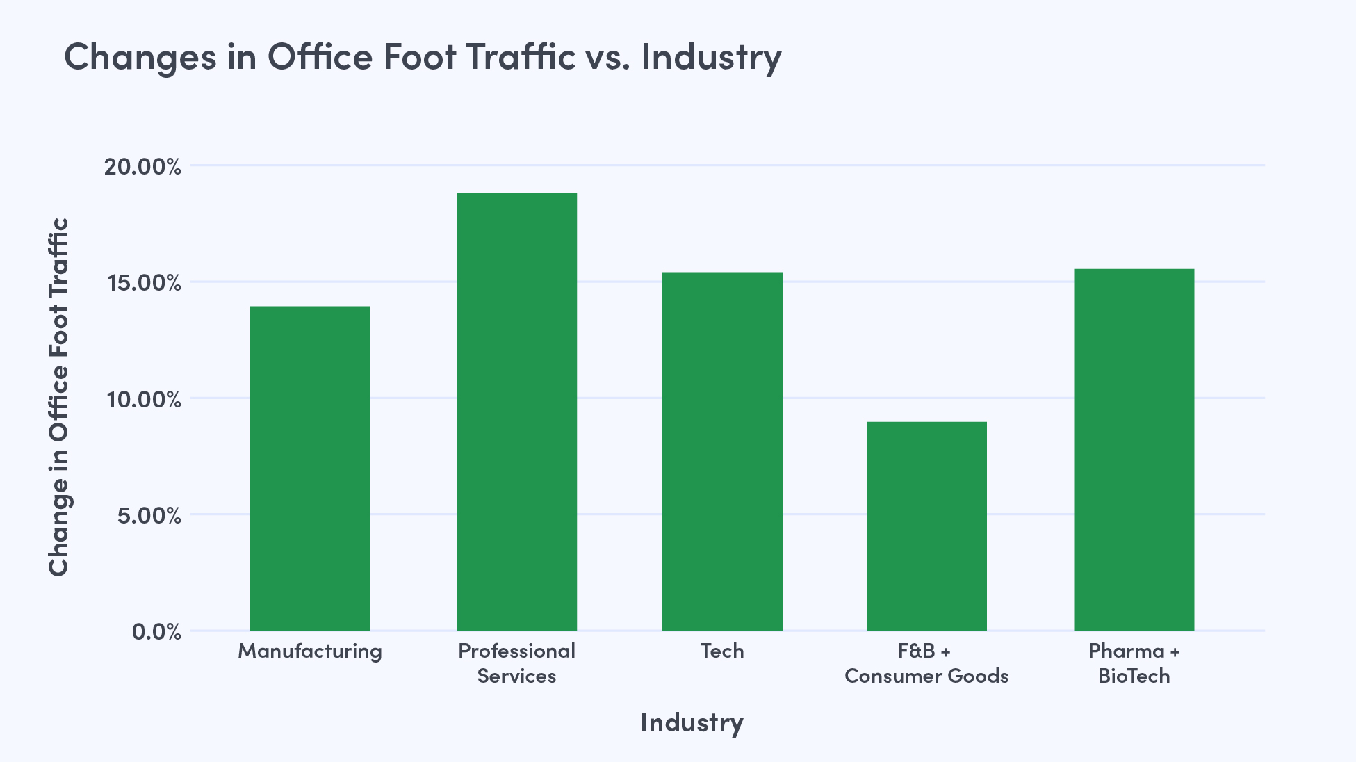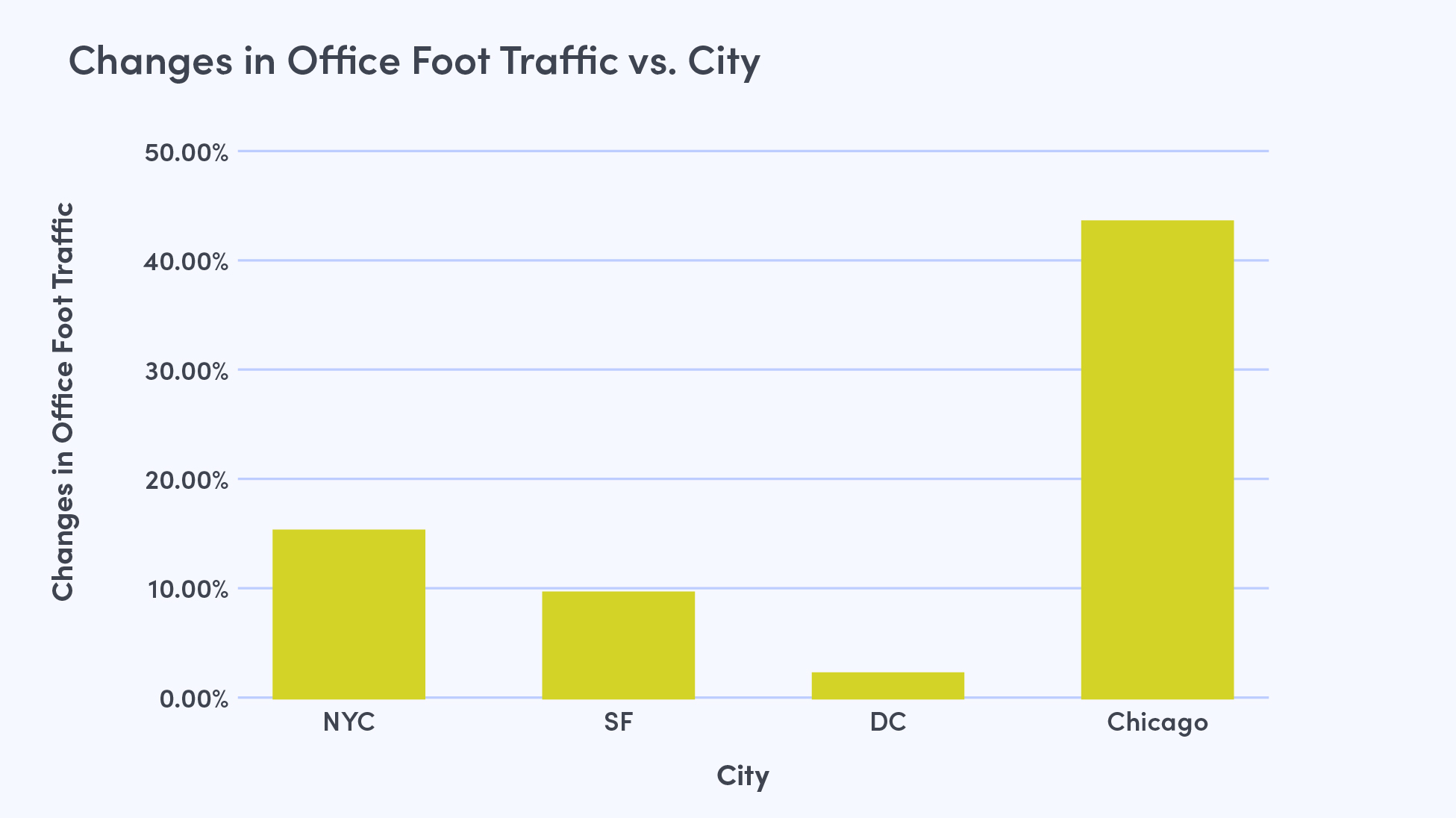 - Thursdays and Fridays saw the largest increases in office foot traffic.