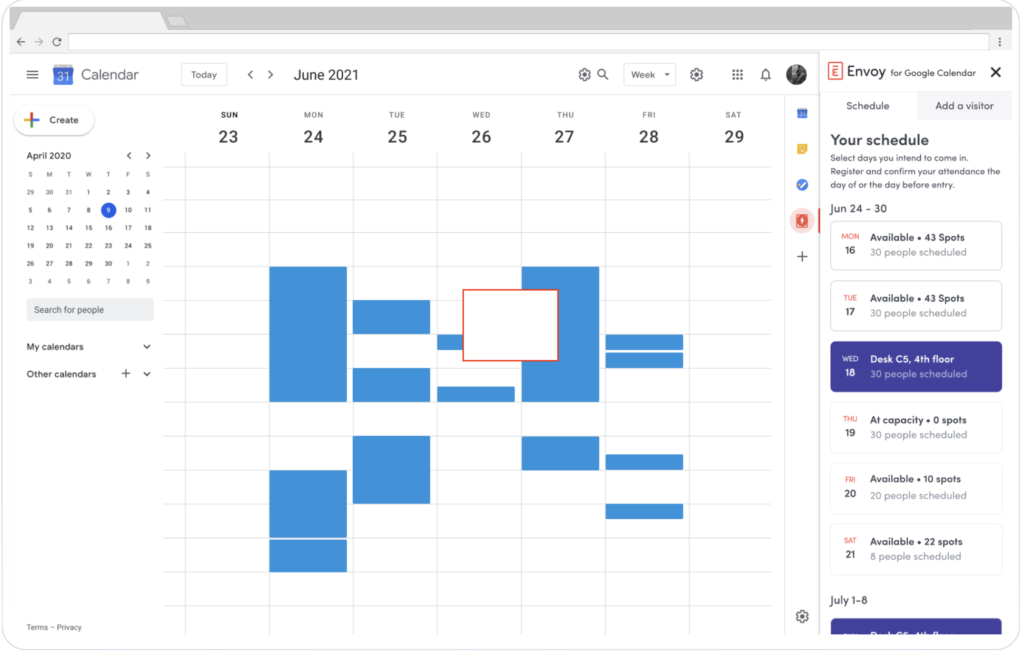 Have you explored the App Marketplace lately? This year, we added dozens of new apps and made significant improvements to existing apps. One app that got a major makeover this year was Google Calendar. Now you can invite visitors, schedule onsite days, and book desks directly from Google Calendar. Any changes made within Google Calendar or Envoy will sync in both places. Learn more.