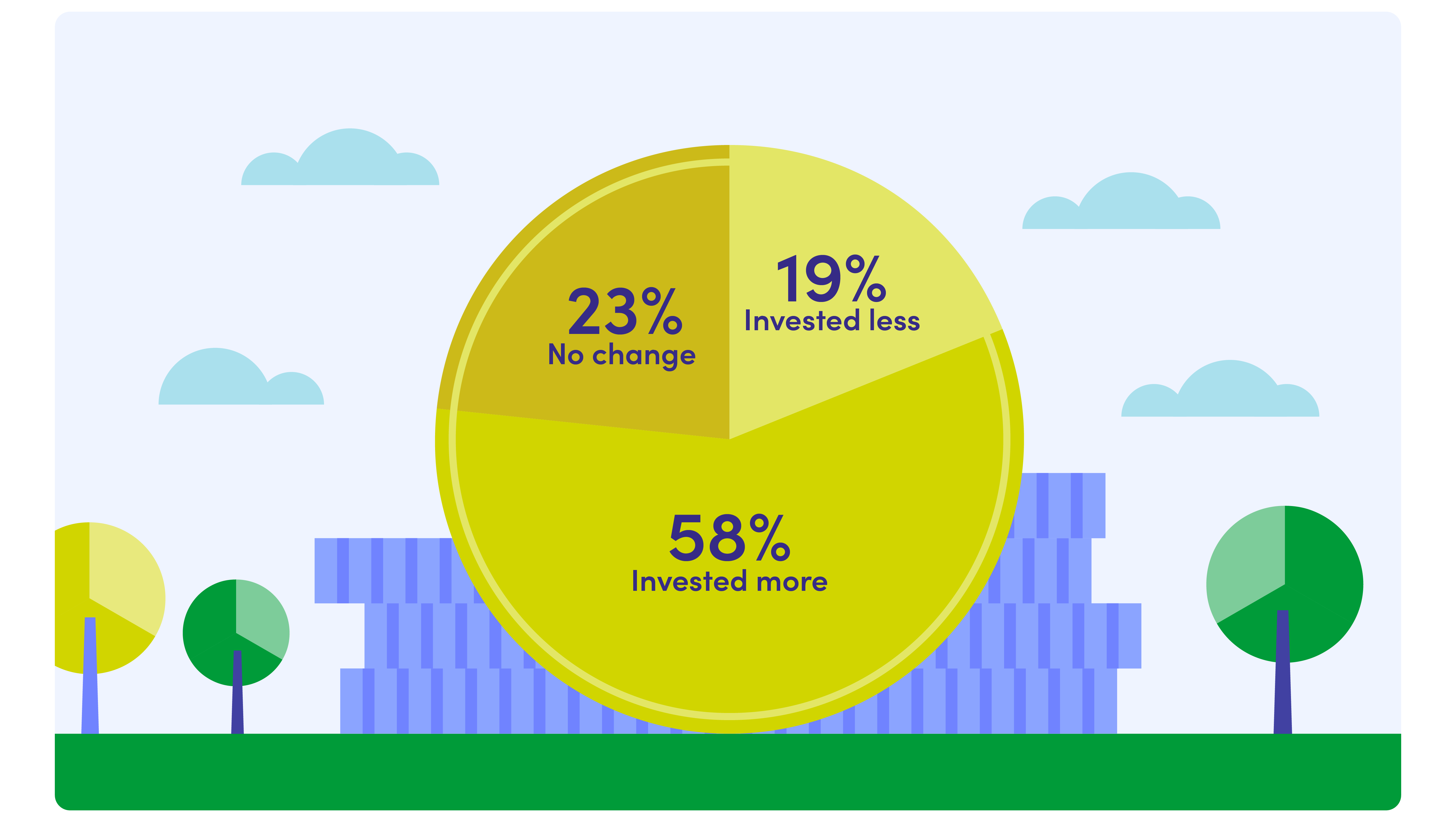 When the pandemic hit, many workplaces either shut down or were open at limited capacity. This not only impacted the role of workplace teams but also workplace investments. But in 2021, many companies reopened and welcomed more folks back on-site.58% of survey respondents said their organizations invested more in the workplace in 2021 compared to 2020. Only 19% reported a decrease in investment, while 23% said there was no change.